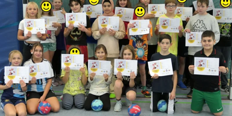 m Rahmen des Sportunterrichtes absolvierten die Schülerinnen und Schüler der Klasse 5b (Sportklasse der Karl-Weigand-Schule) das offizielle DHB-Handball-Spielabzeichen.